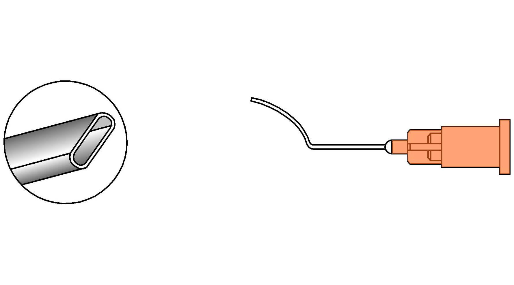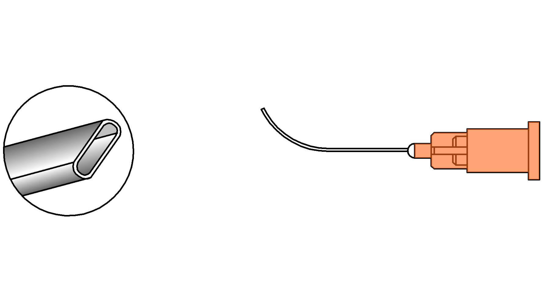 0,5х22 мм (25G) с овальным отверстием, изогнутая 9 мм от конца, 45 гр.