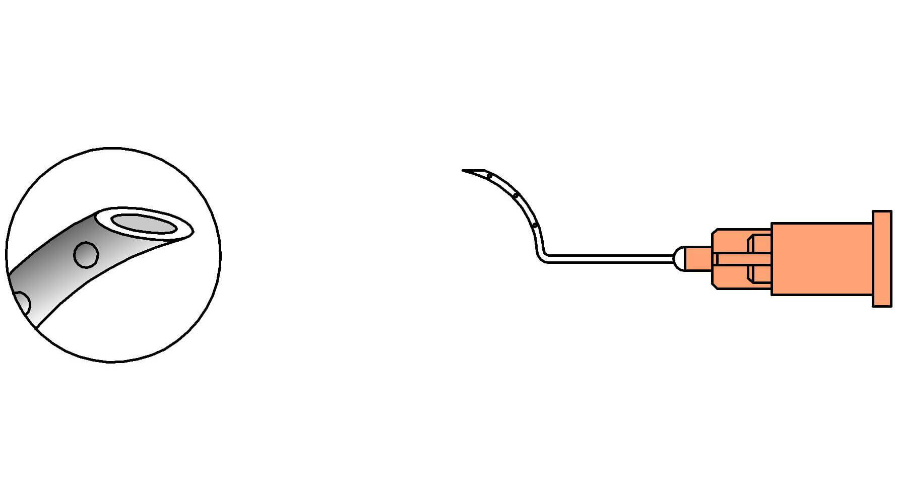 0,5х22 мм (25G) с 7 отверстиями в трех направлениях, плавно обратно изогнутая 9 мм